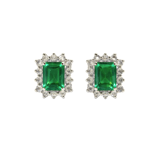 Aretes de Esmeralda 0.98 Ctw, Diamantes .3 Ctw en Oro Blanco 14k.