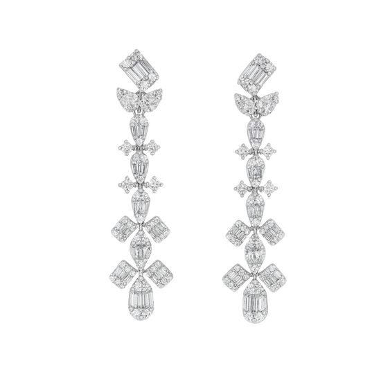 Aretes fancy shapes de diamantes 1.5cts en oro blanco 18k.