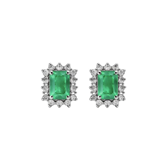 Aretes de Esmeralda 1.07 Ctw, Diamantes 0.21 Ctw. en Oro Blanco 14k.