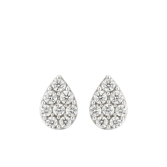 Aretes en forma de gota con diamantes round de .17 Ct en oro blanco 18k.