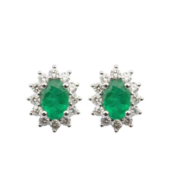 Aretes lady di de esmeralda 0.80ctw y 0.40ctw oro blanco 18K