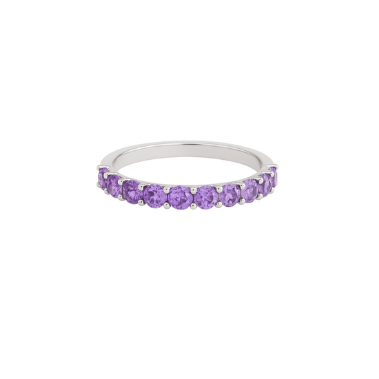 Churumbela de amatista con meeles de 0.02 Ct en oro blanco 14k talla 6.