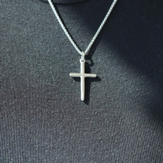 Cadena con dije de cruz delgada en acero Inoxidable, 22 pulgadas.