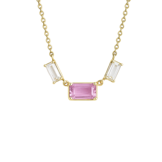 Collar de zafiro rosa de 0.24ct con diamantes naturales en oro amarillo 14k