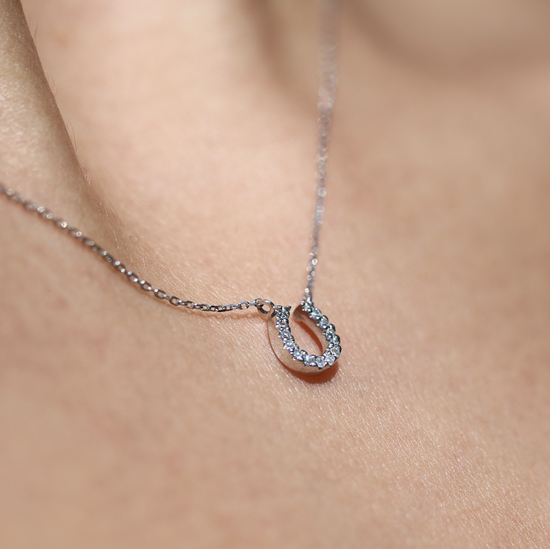 Dije oro blanco de herradura con diamantes naturales