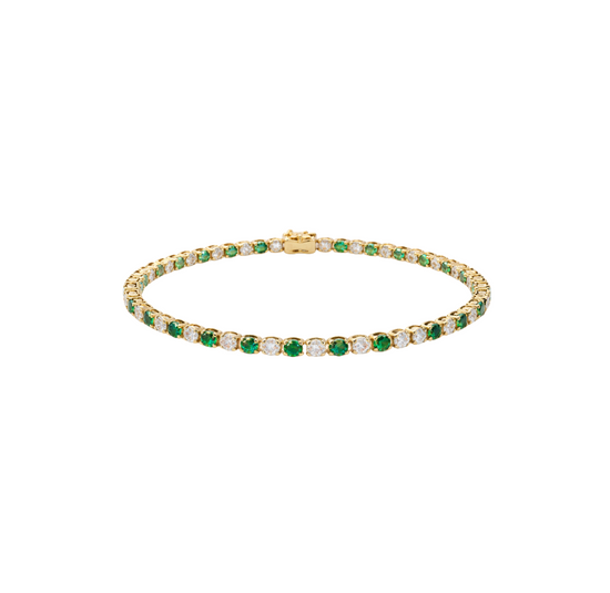 Pulsera de Esmeraldas & Diamantes Laboratorio 1.46 Ctw. Oro Amarillo 14k