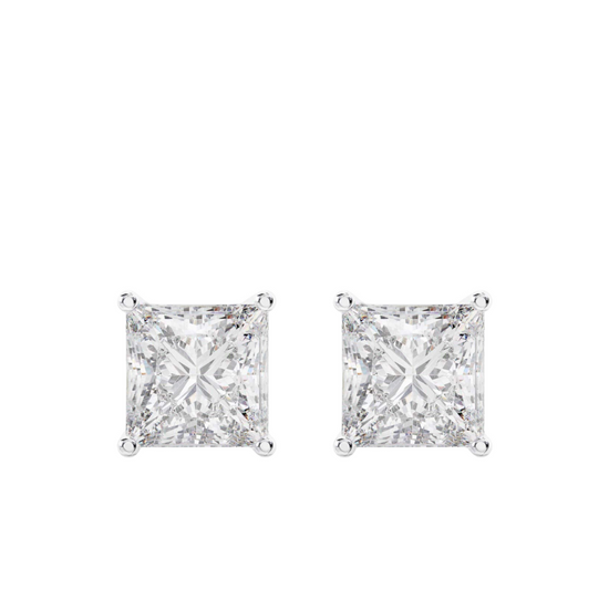 Studs de diamante princess con diamante de 0.50Ct en oro blanco 14k.